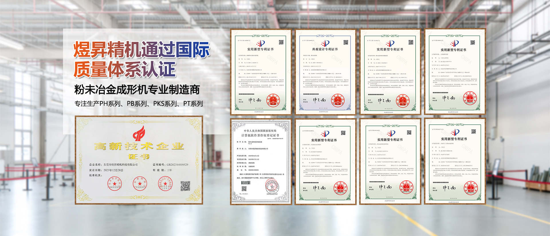公司通过了ISO9001质量管理体系认证,并秉持“持续创新,品质第一,以终为始,合作共赢”的经营理念,从客户利益出发,响应国家节能减排号召,研发出高效、低能耗、操作稳定的机械成形机。未来,我们将牢记使命,不断创新,为粉末治金行业贡献自己的一份力量!